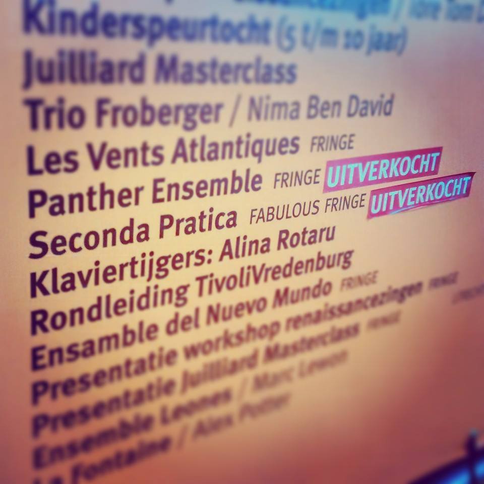 The highlight must have been the Fabulous Fringe with Seconda Pratica, having just completed our residency in Ambronay 2014, on 31st August at the newly reopened Tivoli Vredenburg.